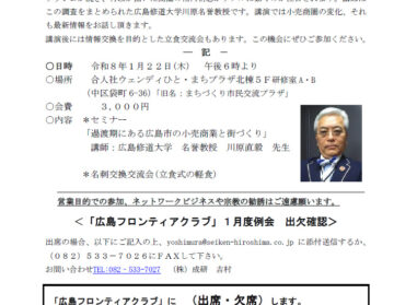 お知らせ 「広島フロンティアクラブ」1月度例会のご案内